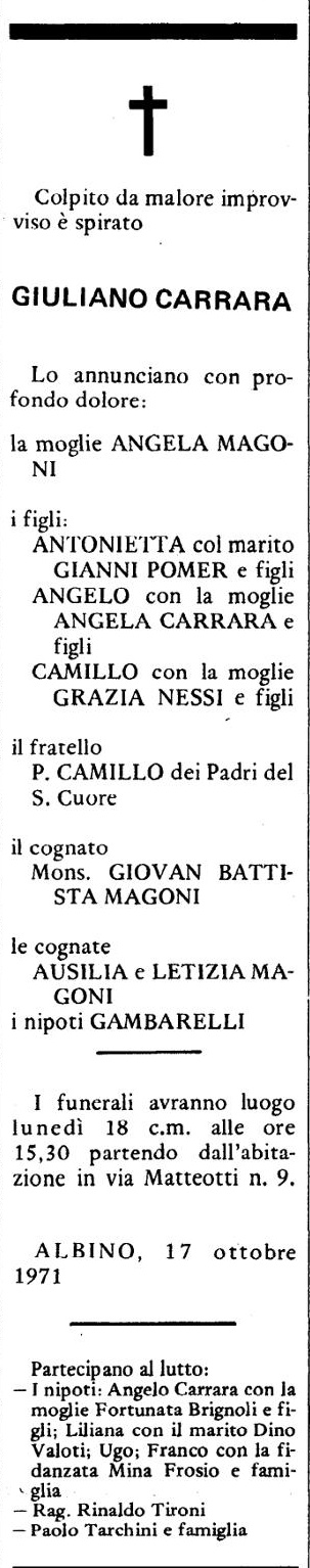 Annuncio Eco Bergamo GIULIANO CARRARA
