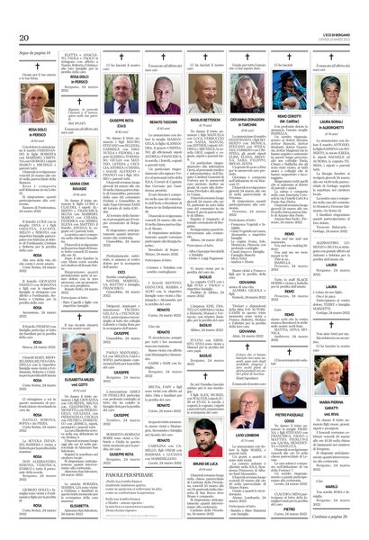 I funerali avranno luogo giovedì 24 marzo alle ore 15 nella chiesa parrocchiale di Azzano San Paolo.