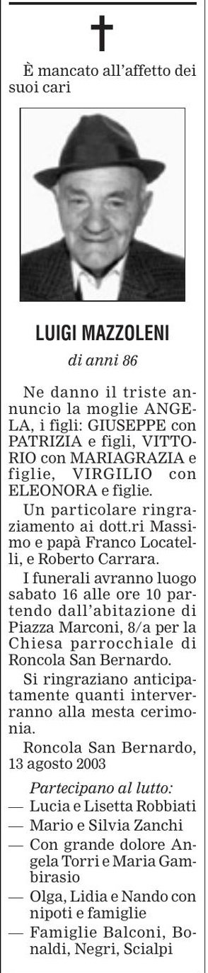 Annuncio Eco Bergamo LUIGI MAZZOLENI