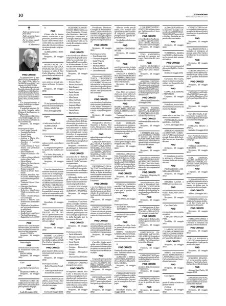 Lo annunciano la moglie STELLA, la sorella ANNA, i figli PIER CARLO e MASSIMO con ROSITA, il nipote ALESSANDRO.