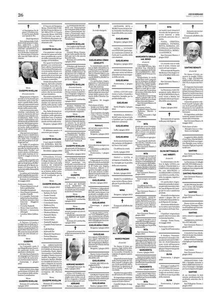 Il Vescovo di Bergamo, Mons. FRANCESCO BESCHI, il Vescovo Mons. LINO BELOTTI, il Vicario Generale Mons. DAVIDE PELUCCHI con tutto il Presbiterio diocesano annunciano che il Signore ha chiamato a Sé