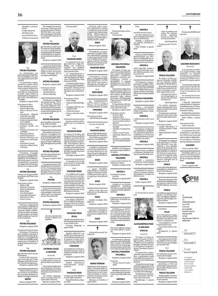 I funerali avranno luogo nella Parrocchiale di S. Antonio in Bergamo, mercoledì 7 agosto alle ore 10.